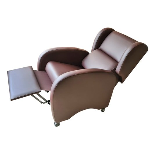 Revestimento do estofo em tela 89% PVC e 11% Algodão, Ignifugo Norma EN1021 (1-2), M2, B2, BS5852 (Crib 5), IMO A652. Normas de resistência à Abrasão ISO 5470-2 150.000 ciclos. Tratamento anti fungos e bacterias. Solidez da cor à luz artificial >=6. Assento e costa estofado a tela geriátrica, lavável, impermeável, ignifuga, antibacteriana e antimicrobiana. Resistente: sangue/óleos/urina/abrasão. Espuma de 30kg/m2. Dimensão: A1080 x L680 x P850 mm; Costa reclinável/Abatimento de pernas.